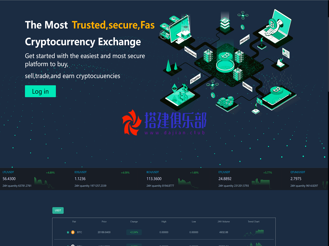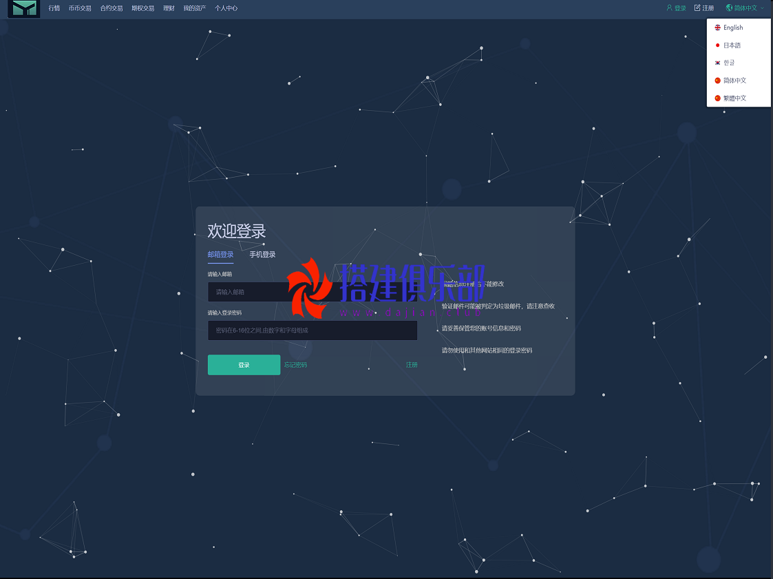 - 最为经典的墨绿色UI,功能方面该有的一样不少,币币交易,合约交易、秒合约交易、锁仓挖矿,新币发行,申购等。