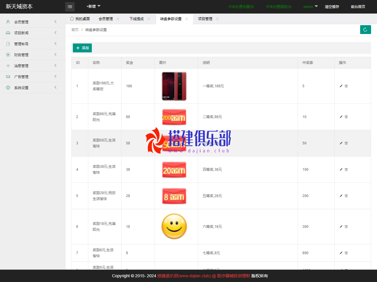新天域资本医疗器械投资理财带幸运转盘、积分商城、投资理财,内置客服系统。