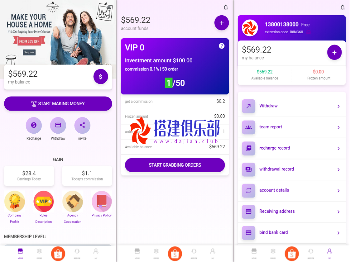 紫色UI海外多语言版本商城刷单,自动抢单手动派单卡单快杀垫付刷单抢单。